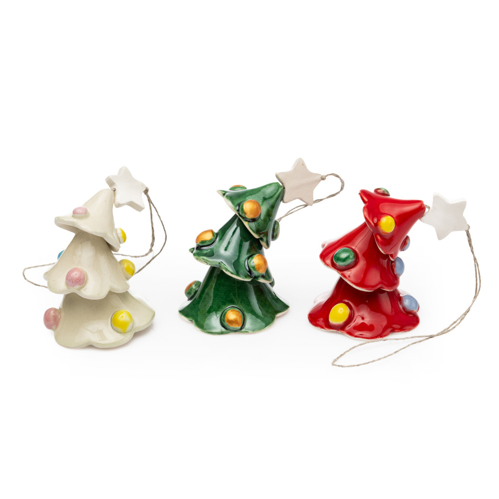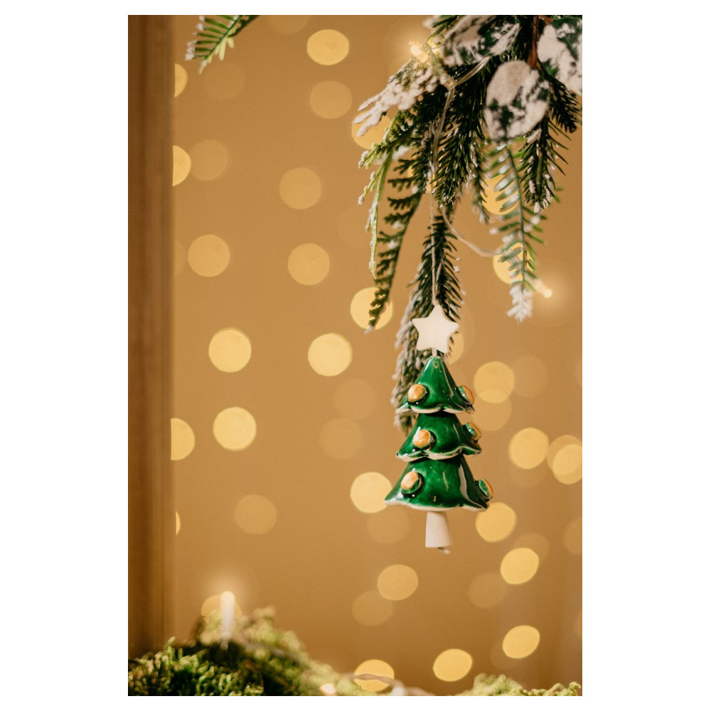 Die Baumschmuck-Glöckchen sind liebevoll in Handarbeit gefertigt und handbemalt. Sie machen sich hervorragend als Baumschmuck, Fensterdeko oder kleines Windspiel zur Weihnachtszeit. Die Keramikglöckchen sind als geschmückter Weihnachtsbaum designt und in verschiedenen Farben erhältlich. So passen sie perfekt zu jeder Weihnachtsdeko bei dir zuhause oder schmücken deinen Weihnachtsbaum.