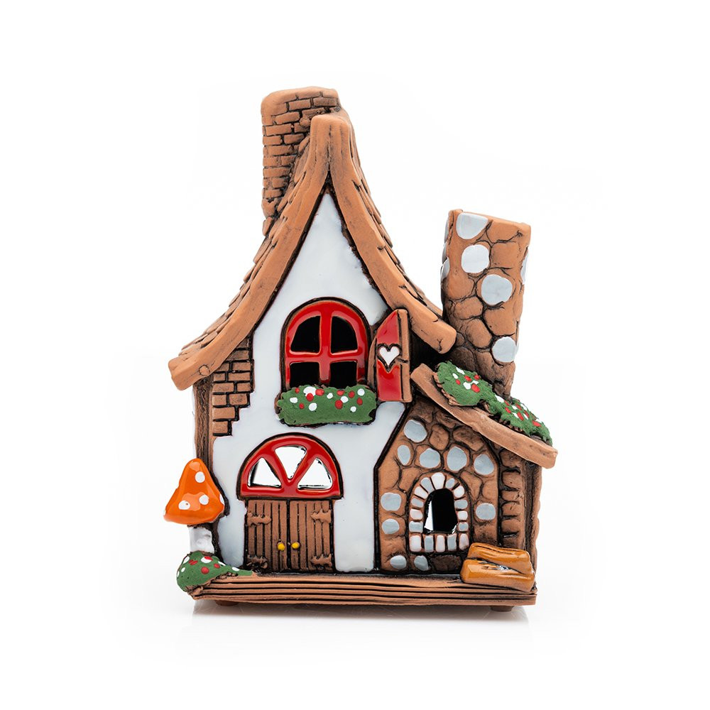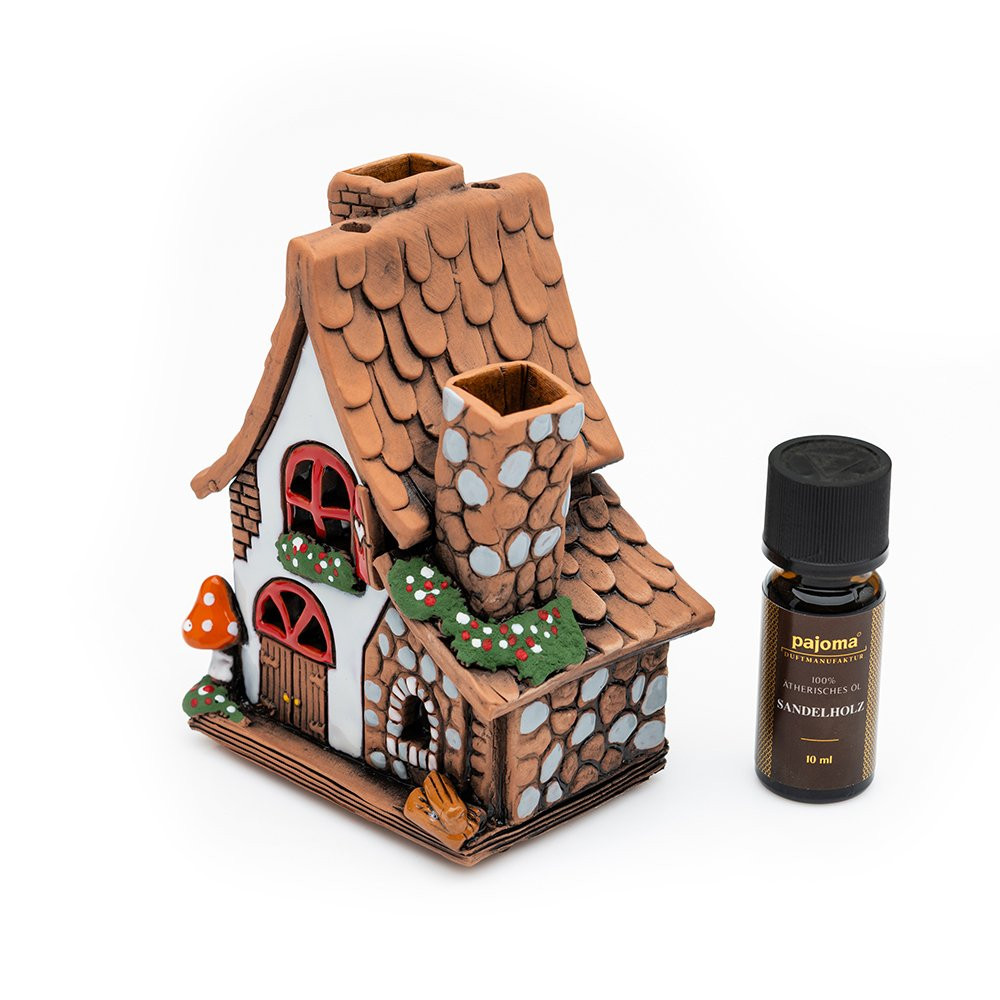 Unser liebevoll gestaltetes Keramikhaus mit Kamin ist ein Highlight für jedes Zuhause. Das Miniaturhaus kann mit Räucherkegeln bestückt oder ätherischem Öl befüllt werden. Es ist Duftlampe, Teelichthalter und Räucherhäuschen zugleich. Wir fertigen jedes Haus mit viel Liebe zum Detail von Hand und es ist natürlich auch handbemalt. Es kann mit dem passenden Duft das ganze Jahr über als Keramikdeko oder Duftspender genutzt werden. Auf der Fensterbank, Möbelstücken oder als schöne Tischdeko zu besonderen Anlässen.